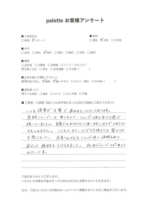 ご来店からヘアカラー後のシャンプー終了までわずか50分!
